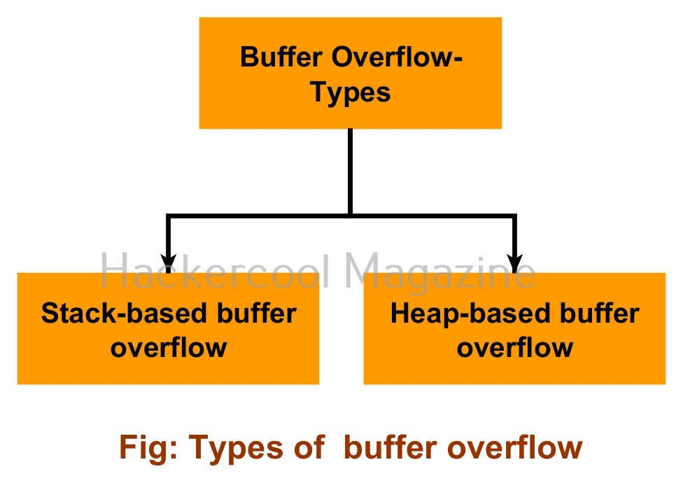 Since buffer overflow is the overflow of data in memory buffers, there are prominently two types of buffer overflow depending on how a data is saved. They are,
