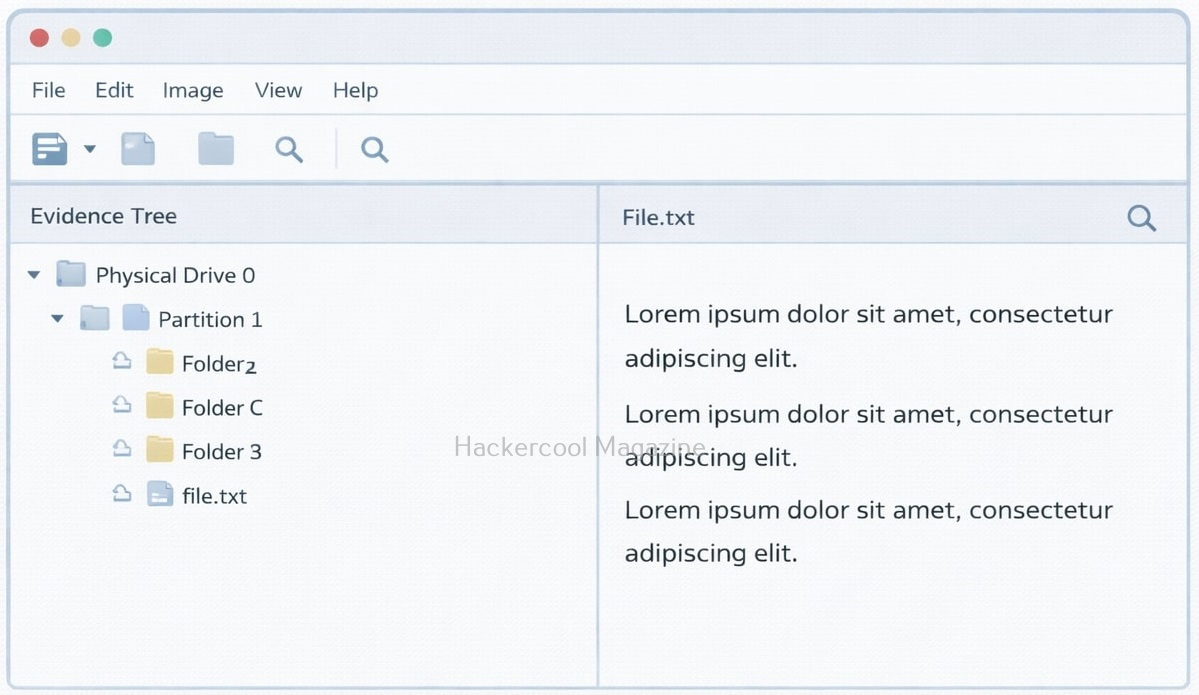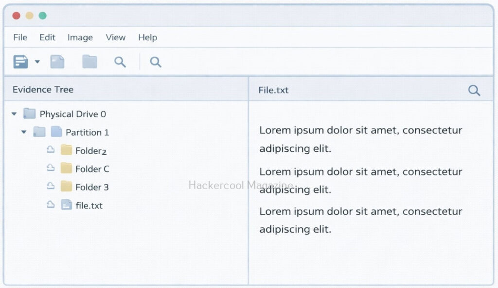 One of this tool’s greatest strengths is its ability to preview evidence without altering it. To view evidence with FTK Imager, go to File → Add Evidence Item → Image File.