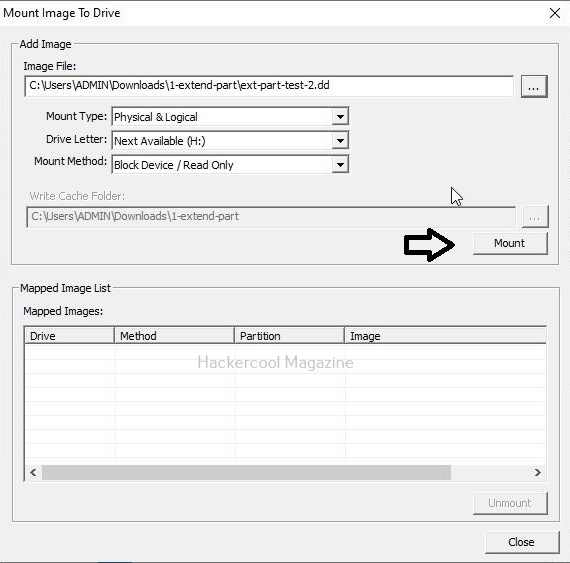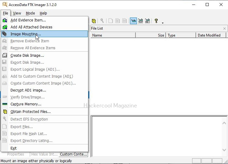 You can mount also mount a forensic image as a read-only drive for examination. You can do this by going to File → Image Mounting. Once you are here, select from: