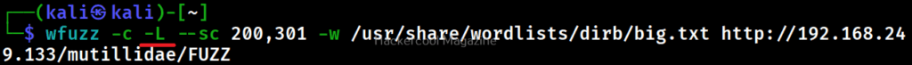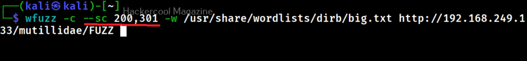 Apart from hiding responses of specific codes, we can also specify Wfuzz to show responses with specific codes with this option. For example, here we can specify to view only responses with 200, 301 requests.