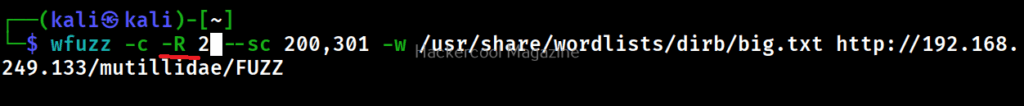 This option specifies the depth of recursion level with wfuzz. For example. let’s set recursion to “2”.
