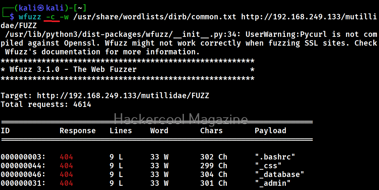 Sometimes the output of wfuzz can be monotonous and boring. This option can be used to get colored output.