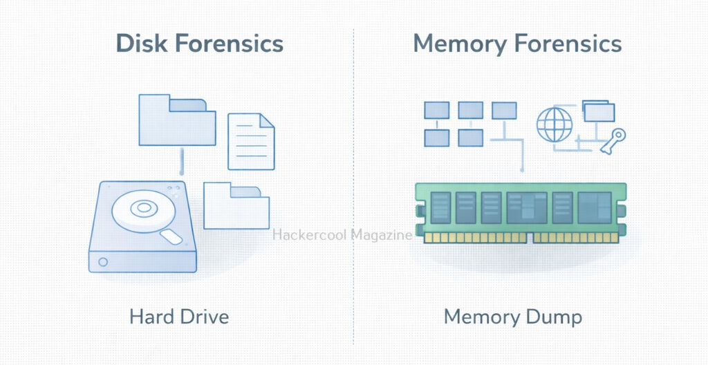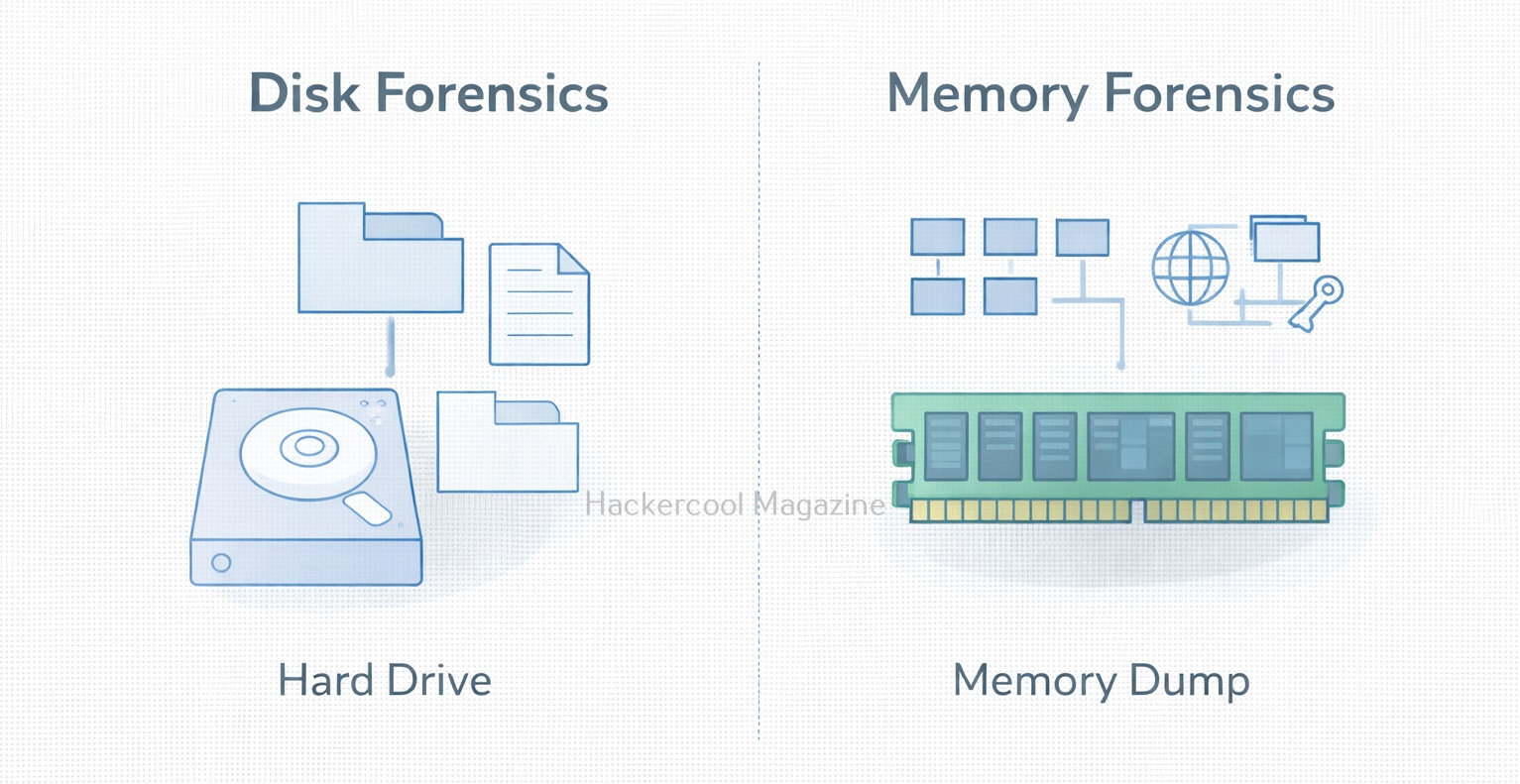 Hello, aspiring Cyber Forensic Investigators. In our previous blogpost, you learnt in detail about digital forensics. In this article, you will learn about Memory Forensics. When most people think about digital forensics, they imagine hard drives, deleted files and disk images. While disk forensics is still important, many modern attacks leave their most valuable evidence somewhere else entirely—in system memory (RAM). This is where memory forensics comes in.