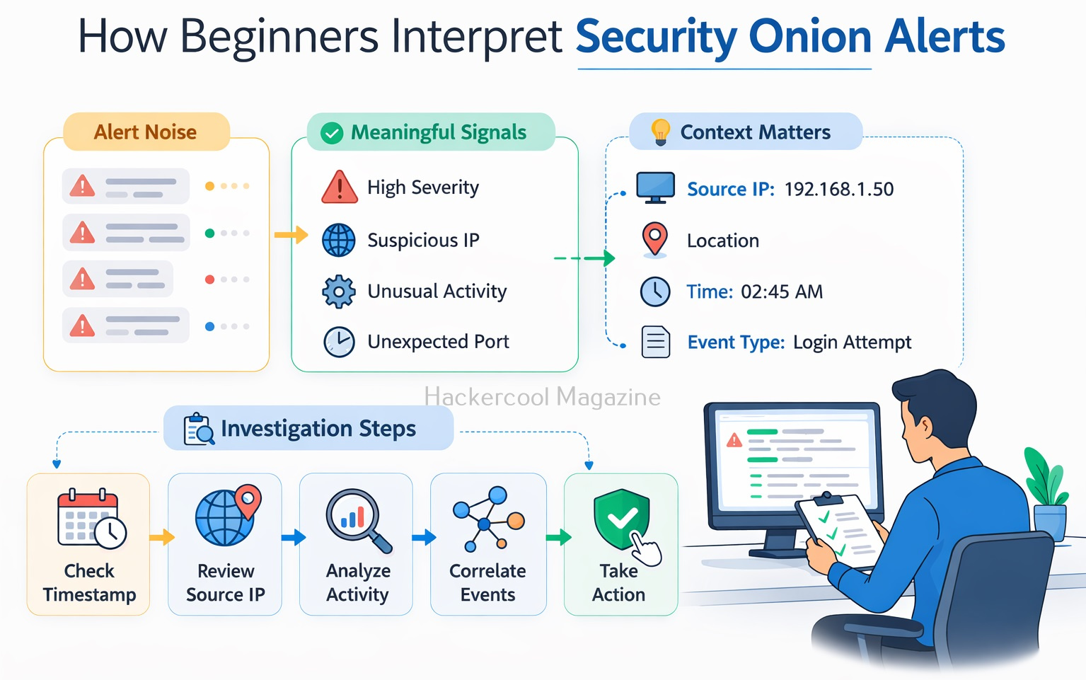 Beginners using Security Onion should focus on understanding alerts rather than tuning complex rules. A simple learning approach is: